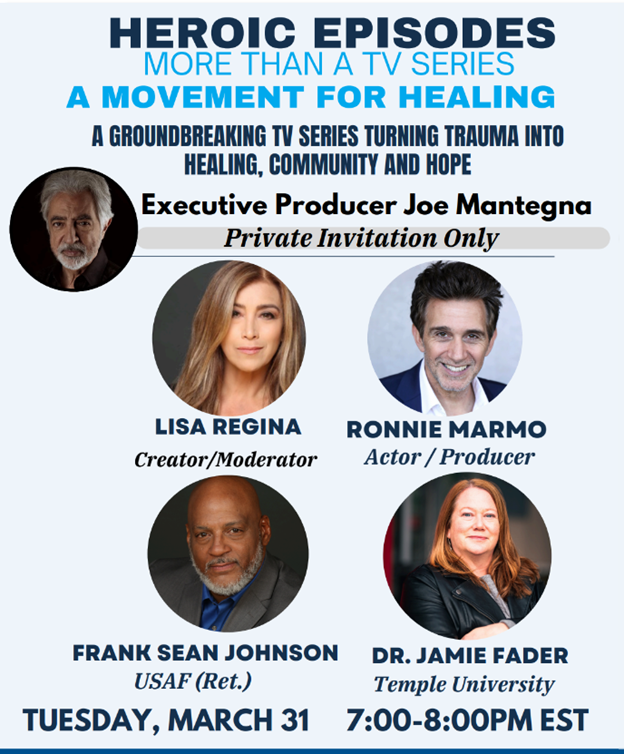 In a live Zoom event on Tuesday, March 31, AMAC Foundation Veteran Outreach Program (FVOP) collaborator Lisa Regina will showcase her organization’s progress in developing “Heroic Episodes,” a dramatic series about the powerful bond between a traumatized Army veteran and a teen fighting to survive on gang-infested streets. Lisa will be joined by acclaimed actor and Executive Producer Joe Mantegna, along with several key principals from the series’ production team, to present a one-hour overview of the series’ mission and progress toward release later this year.